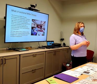 Tracey has received training from the founder of Functional Reflex Therapy, Lorraine Senior, to offer FRT sessions to individuals as well as share the basic techniques with parents and caregivers in a nurturing, positive touch activity workshop as a qualified FRT Reflexologist.